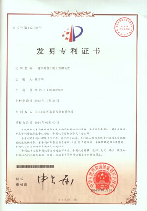 “五道递进发酵法”是中国赖茶工艺核心技术。在公司成立之初,科研技术人员以赖家传承百年的古法秘制工艺为基础,历时6年苦心钻研、博采众长,结合现代科技专利技术最终得以恢复。精心制作的赖茶色透香悠味醇的魅力令人感叹!茶叶品质与众不同。“ 古法工艺传承三甲,匠心独运卓著百年”是赖氏家族制茶历史和社会影响的真实写照。为弘扬赖茶文化和保护家族制茶核心技术,赖培华先生获得了国家知识产权局颁发的茶叶干发酵发明专利和茶叶贮存实用新型专利。