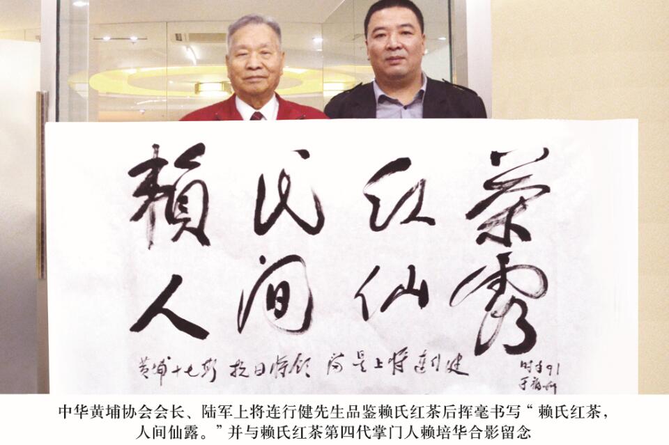 “我一定要把中国茶文化带到世界各地,广为弘扬,让大家分享。”连老将军表示,大陆的赖氏红茶和阿里山的高山乌龙茶就像两姐妹,是同根同族的一家人。品茗之余,连老将军即兴挥毫,现场题下了“赖氏红茶人间仙露”与“赖氏红茶两岸情”两幅墨宝。