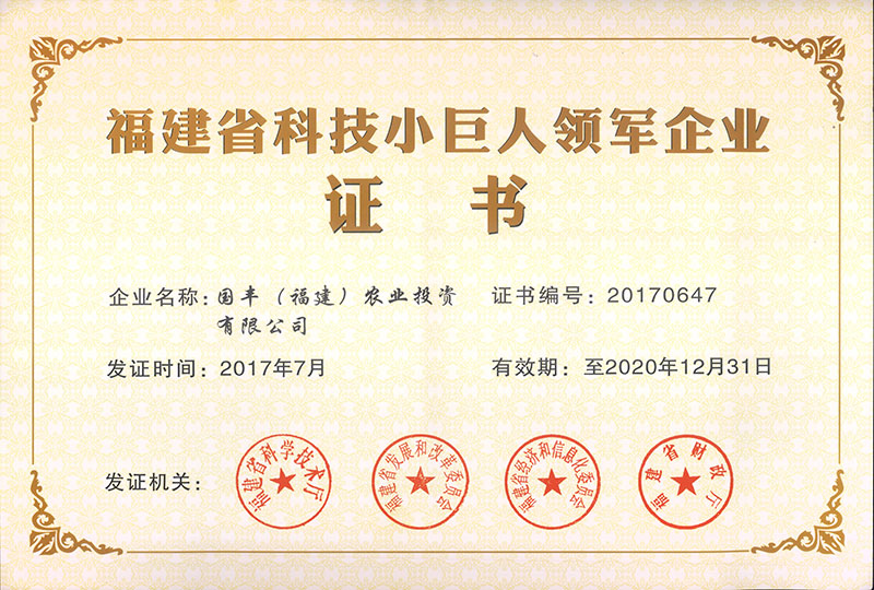 2017年获科技小巨人企业证书